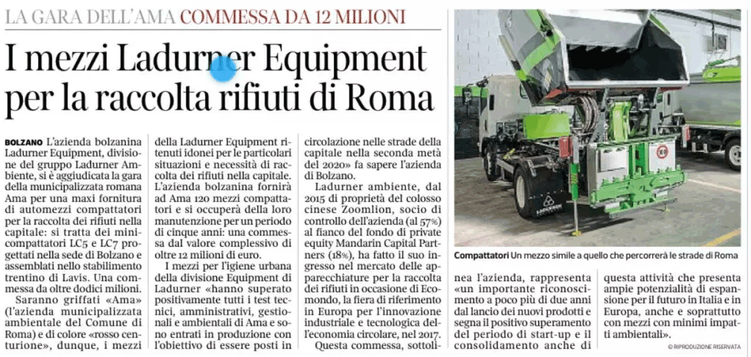 ▲意大利媒體有關羅馬環衛裝備采購項目中標報道